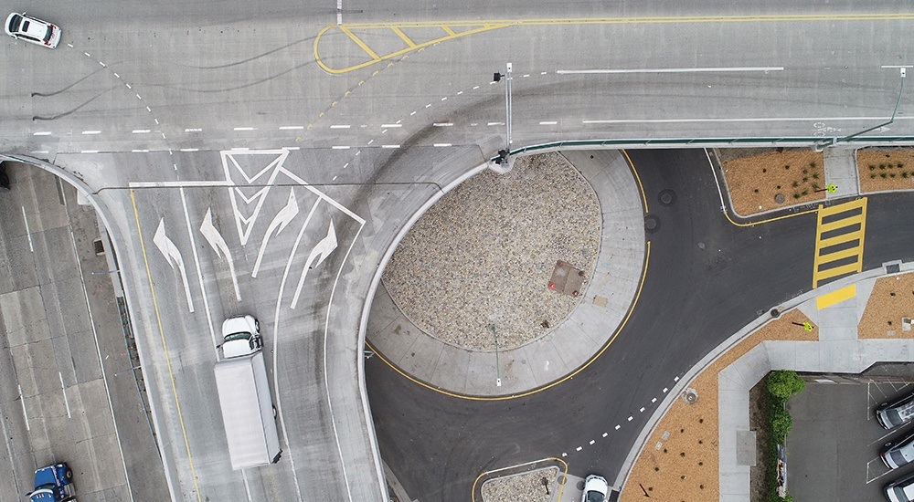 The finished project includes ramp and intersection modifications and reconstruction, overcrossing structure replacements and construction of a new soundwall and re-directs regional traffic out of the neighborhood. The final structures better connect the cities of Alameda and Oakland and can now be used by school children within the Jingletown neighborhood, motorists, pedestrians and bicyclists.