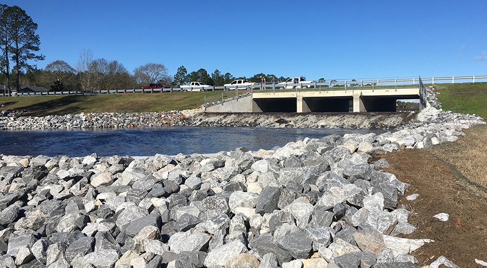 The project consisted of the reconstruction of an 800-linear-foot earthen dam in the Vancleave community in northern Jackson County. The reconstruction created a dam with 1,500 linear feet of new roadway across the crest of the dam. The project included significant excavation and grading activities to construct the downstream slope of the dam.